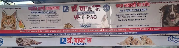 Dr. Bapat's Pet Animal Hospital is one of Thane's oldest and most established veterinary hospitals, located near Holy Cross School at Castle Mill Naka, Thane West. The hospital is run by a family of qualified veterinarians: Dr. D. M. Bapat (B.V.Sc & A.H), Dr. G. M. Bapat (B.V.Sc & A.H), Dr. Archana D. Bapat (B.V.Sc & A.H, Exotic Animal and Reptile Specialist, 27 years experience), and Dr. C. G. Bapat (M.V.Sc, Orthopedic Surgeon). The hospital offers comprehensive veterinary care including general consultation, surgery, dental care, grooming, pet boarding, pet shop, pathological laboratory, ambulance services, and a well-equipped operation theatre. The hospital maintains computerised medical and vaccination records and has branches in Borivali, Worli, Kalyan and Bhandup. It is open all 7 days a week from 10 AM to 9 PM.