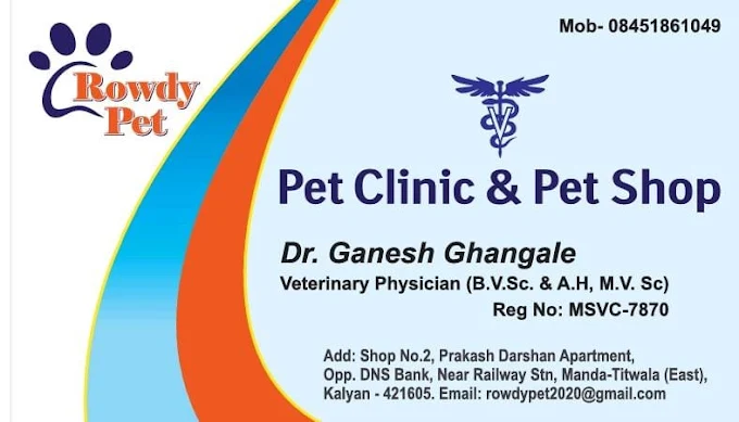 Rowdy Pet Clinic & Pet Shop is a veterinary clinic in Manda, Mumbai offering general veterinary consultation, bird, exotic & large animal care, vaccination, emergency service services. Dr. Ganesh R Ghangale is a veterinary doctor in Mumbai with 10 years of experience. Looking for a pet clinic in Manda, Mumbai? Book an appointment online with Dr. Ganesh R Ghangale at Rowdy Pet Clinic & Pet Shop.