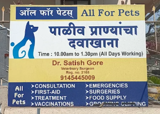 All for Pets is a veterinary clinic in Pimpri-Chinchwad, Pune offering veterinary consultation – general opd, general checkup – routine health examination, vaccination – dogs & cats, laser therapy – veterinary therapeutic laser services. Dr Satish Gore is a veterinary doctor in Pune with 9 years of experience. Looking for a pet clinic in Pimpri-Chinchwad, Pune? Book an appointment online with Dr Satish Gore at All for Pets.