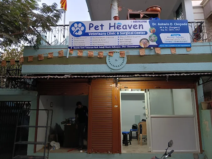 Pet Heaven Veterinary Clinic and Surgical Centre - Animal hospital in Ballarpur. Rated 5.0 stars (7 reviews). Services: Puppy consultation, Deworming, Routine health checkup, Neuter/Spaying, Minor and major surgeries. Professional surgical center with comprehensive pet care. Opens 5 PM.